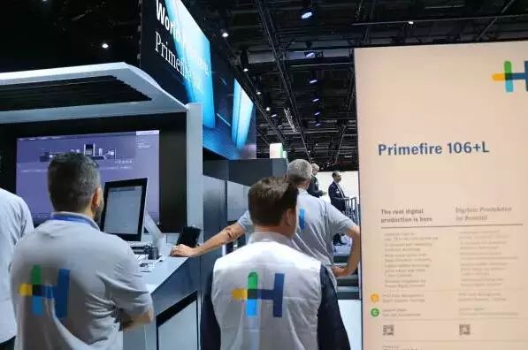 Ra mắt sản phẩm mới là máy in kỹ thuật số Primefire 106, ba cánh tay robot điều khiển màn hình chia nhỏ luôn phản hồi lời nói của người dẫn chương trình, phải nói rằng “chúng chơi trong thành phố giỏi thật”.